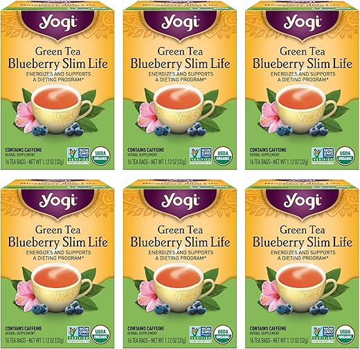 Yogi Tea – Green Tea Blueberry Slim Life (6 Pack) – Contains Caffeine – 96 Organic Tea Bags